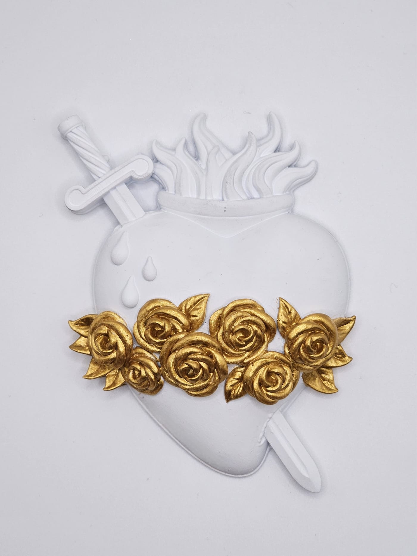 The Immaculate Heart of Mary is a unique piece hand painted and 100% customizable. Made of high quality resin, each heart is painted with meticulous care to create an object that is both beautiful and durable.