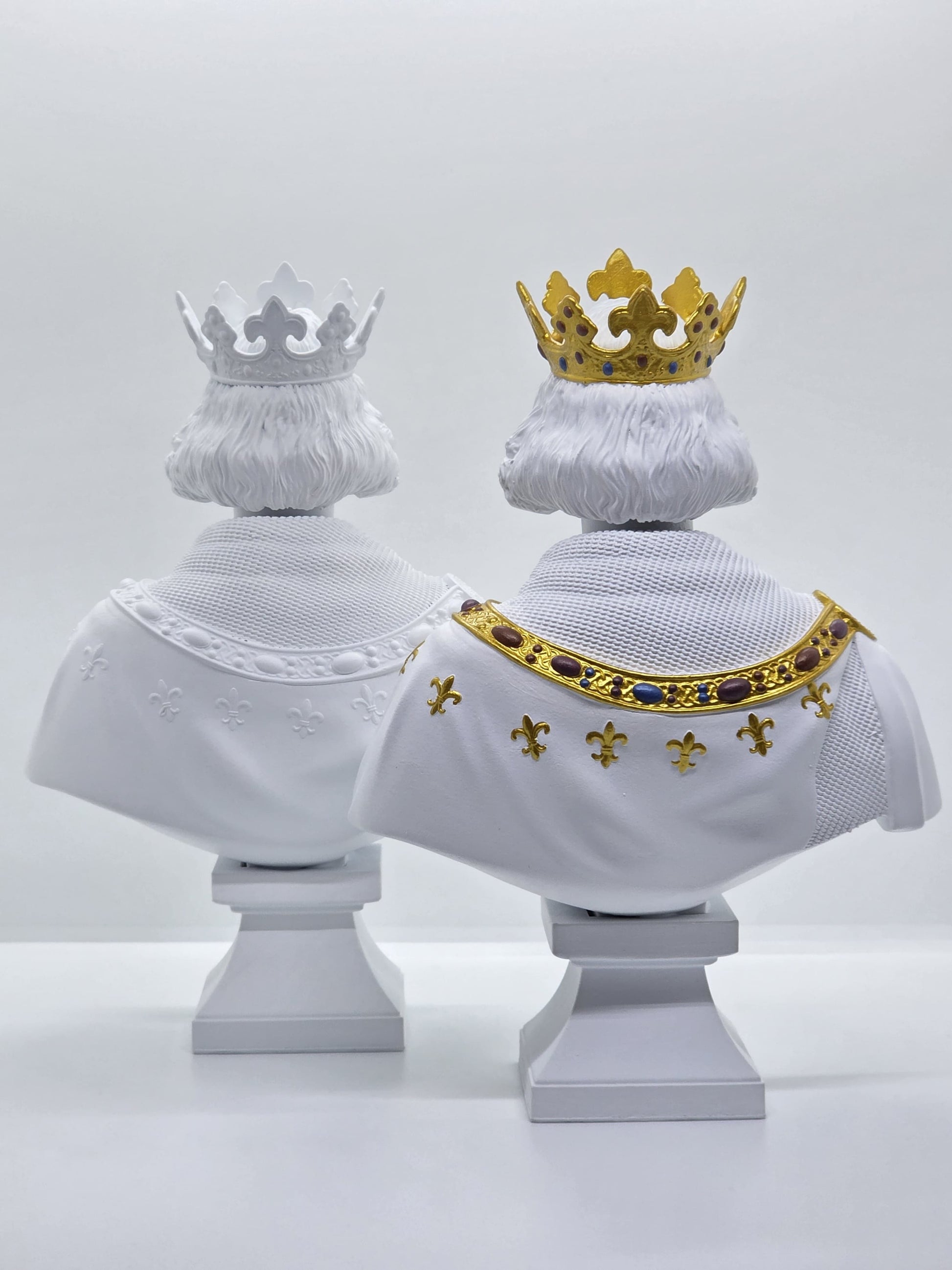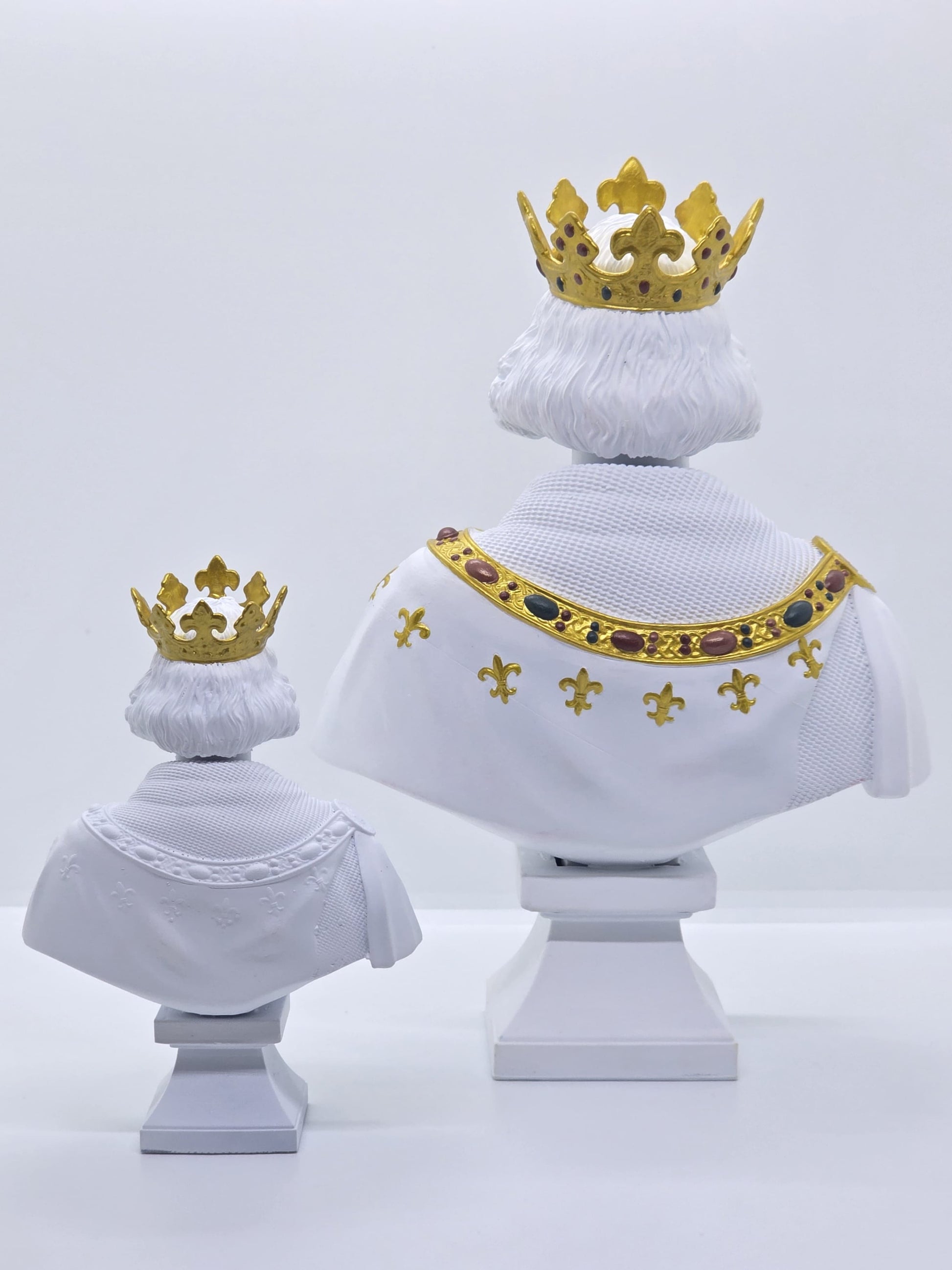 Ce buste est soigneusement sculpté en résine de haute qualité et minutieusement peint à la main. Chaque expression du visage, chaque pli de la couronne et chaque détail a été pensé pour transmettre la dignité et la ferveur du saint roi.